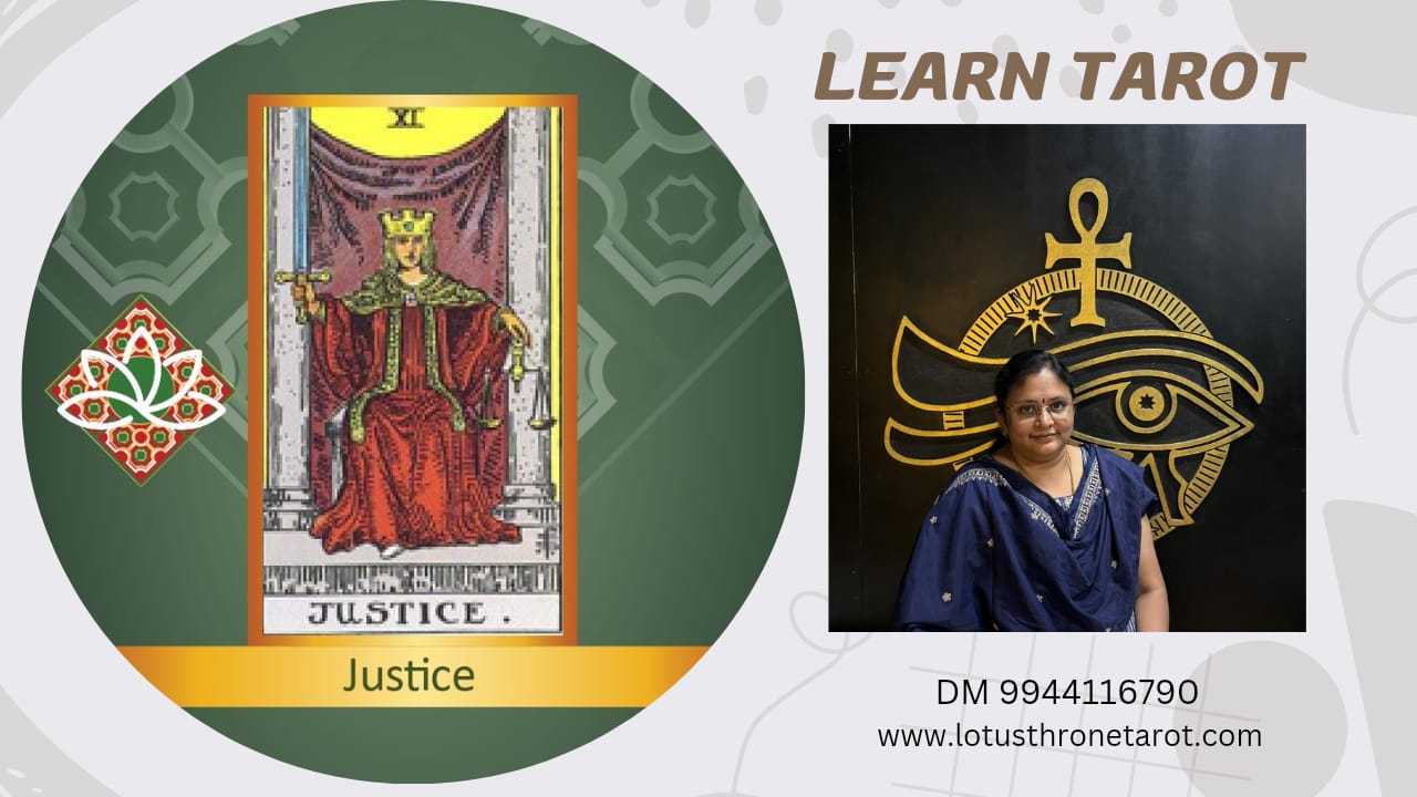 No 11 Justice Major Arcana Justice Cards meanings given are for upright position Learn Tarot Easy to learn Take away Tarot guidance cards for free - Easy to carry helps for Daily Guidence To know more Contact Lotus Throne Tarot Trust Your Compass DM - 9944116790 9894042491 www.lotusthronetarot.com